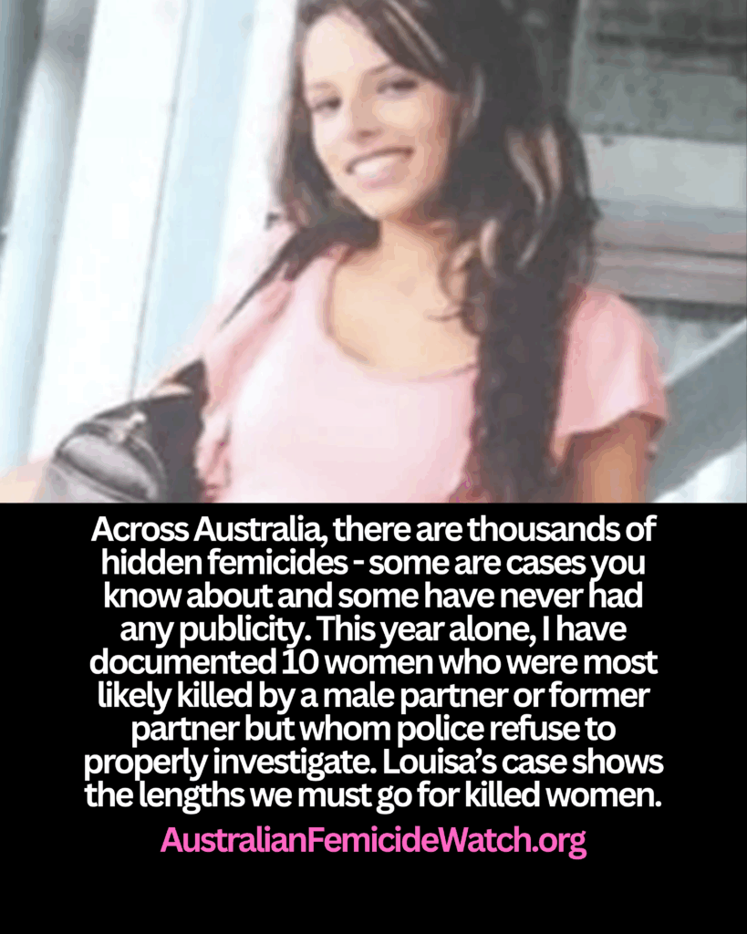 This year alone, I have documented 10 women who were most likely killed by a male partner or former partner but whom police refuse to properly investigate. Louisa’s case shows the lengths we must go for killed women.