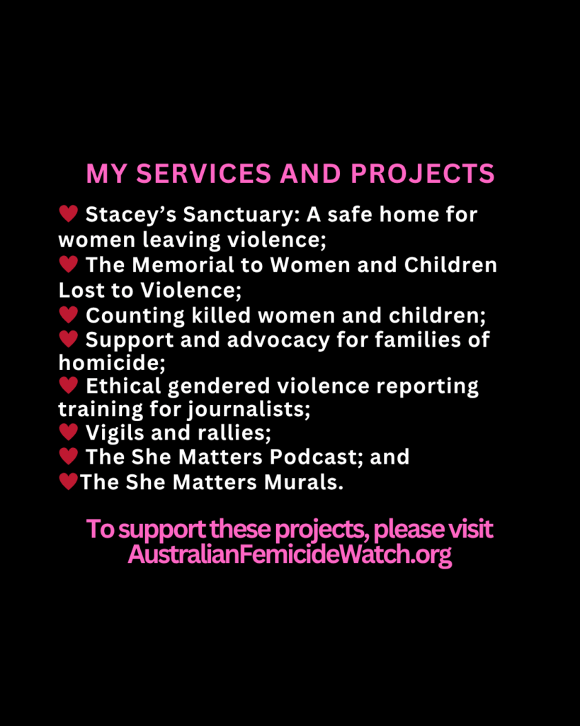 I need your help to support The RED HEART Campaign and Australian Femicide Watch. You can donate or buy a t-shirt! 100% of money raised funds RED HEART and Australian Femicide Watch.