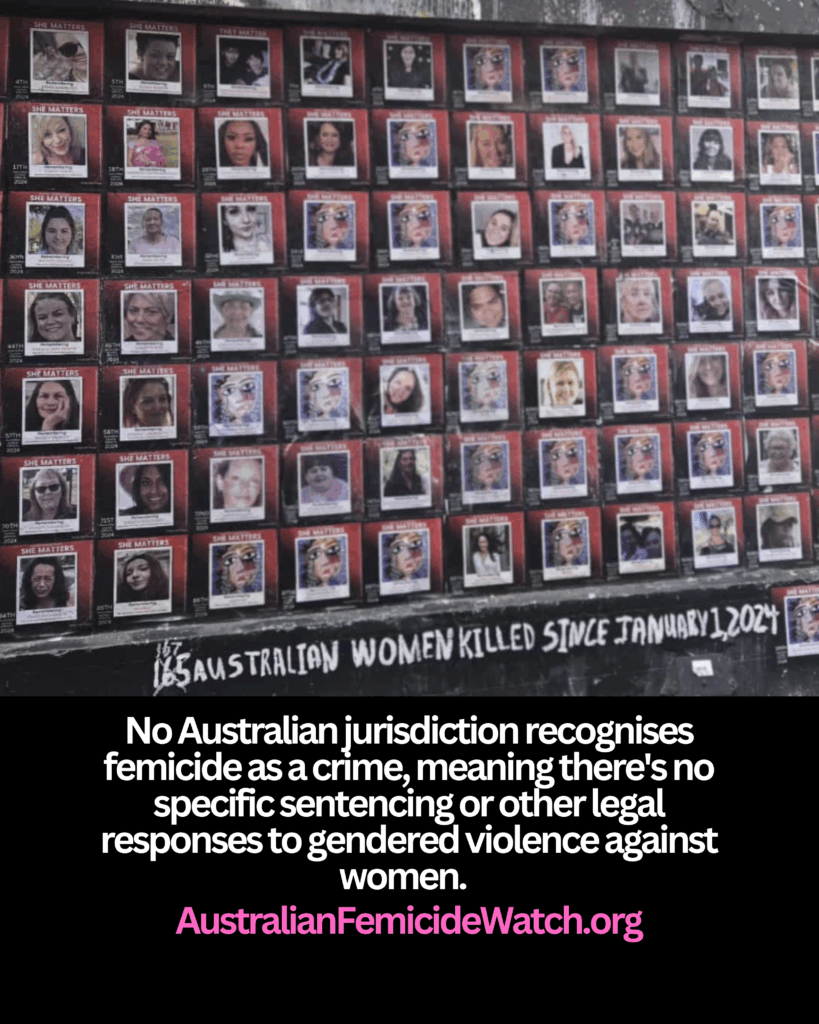No Australian jurisdiction recognises femicide as a crime, meaning there’s no specific sentencing or other legal responses to gendered violence against women.