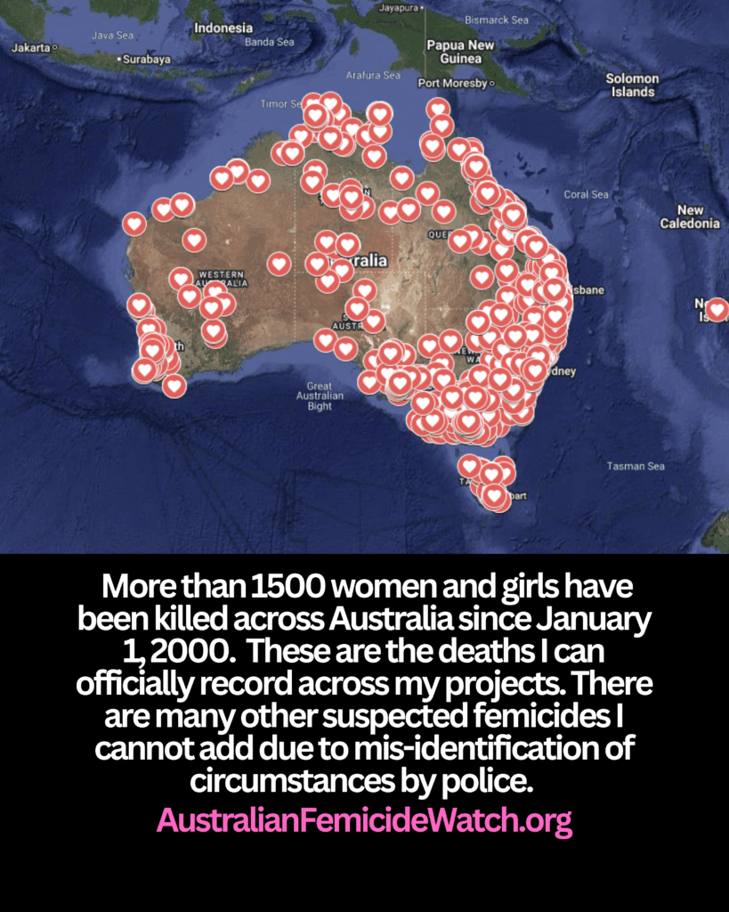 More than 1500 women and girls have been killed across Australia since January 1, 2000. These are the deaths I can officially record across my projects.