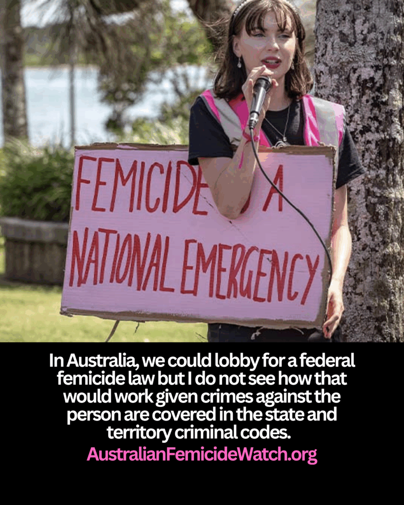 Femicide is not a crime in Australia.