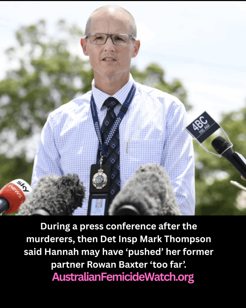 During a press conference after the murderers, then Det Insp Mark Thompson said Hannah may have ‘pushed’ her former partner Rowan Baxter ‘too far’.
