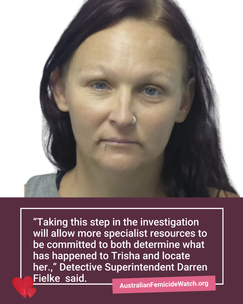 “Taking this step in the investigation will allow more specialist resources to be committed to both determine what has happened to Trisha and locate her.,” Detective Superintendent Darren Fielke said.