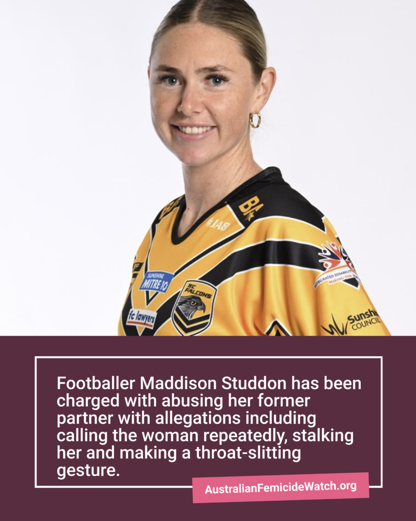 Footballer Maddison Studdon (pictured) has been charged with abusing her former partner with allegations including calling the woman repeatedly, stalking her and making a throat-slitting gesture.
