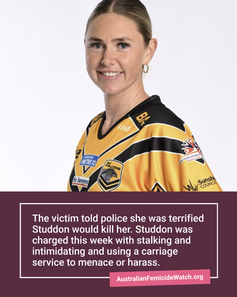 Studdon was charged this week with stalking/intimidating and using a carriage service to menace or harass.