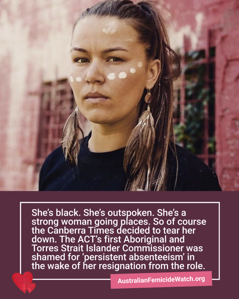 She’s black. She’s outspoken. She’s a strong woman going places. So of course the Canberra Times decided to tear her down. The ACT’s first Aboriginal and Torres Strait Islander Commissioner was shamed for ‘persistent absenteeism’ in the wake of her resignation from the role.