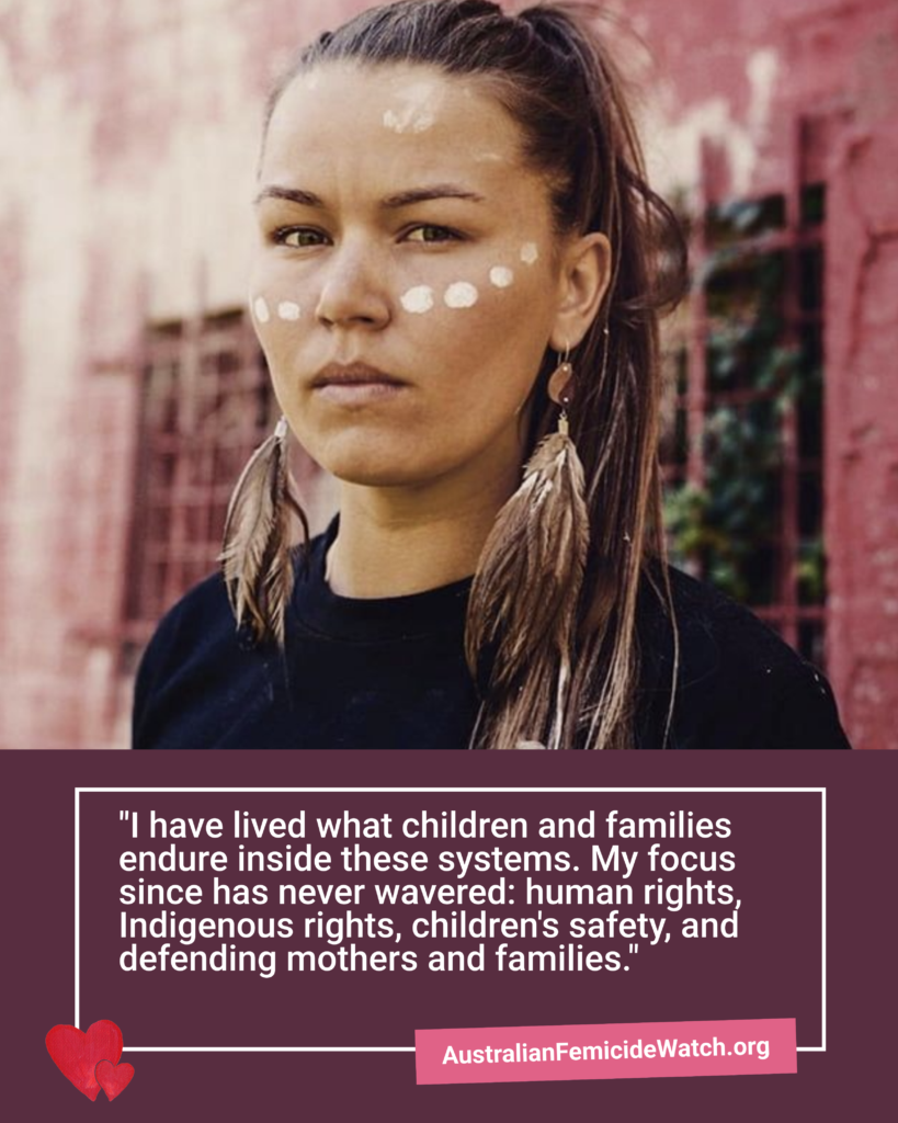 “I escaped the child ‘protection’ system at 18, after being forcibly removed from my family and communities at 10 because of racism,” she said.