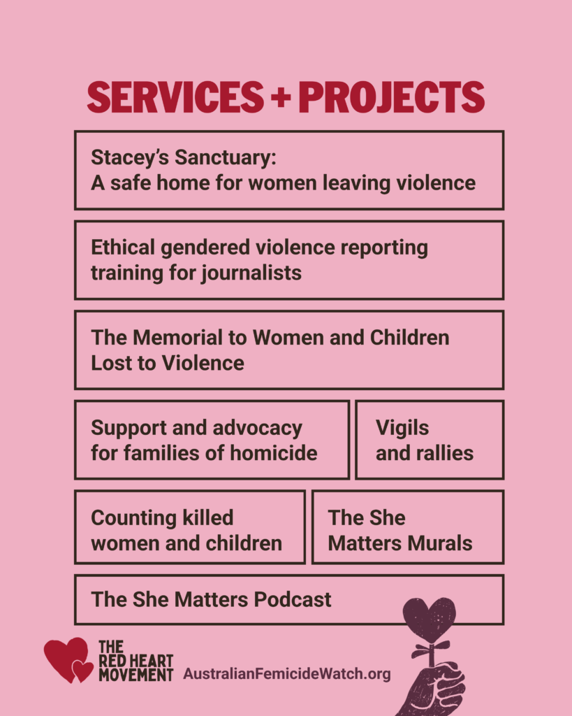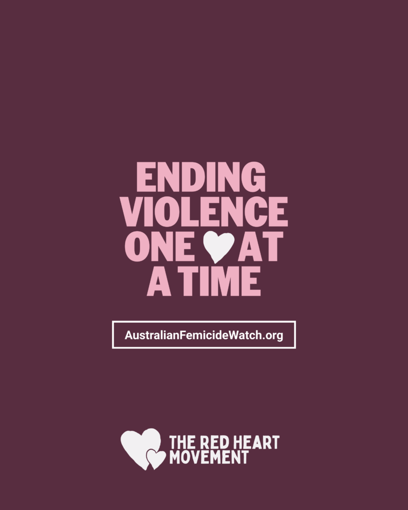 I need your help to support The RED HEART Movement and Australian Femicide Watch. You can donate or buy a t-shirt! 100% of money raised funds RED HEART and Australian Femicide Watch.