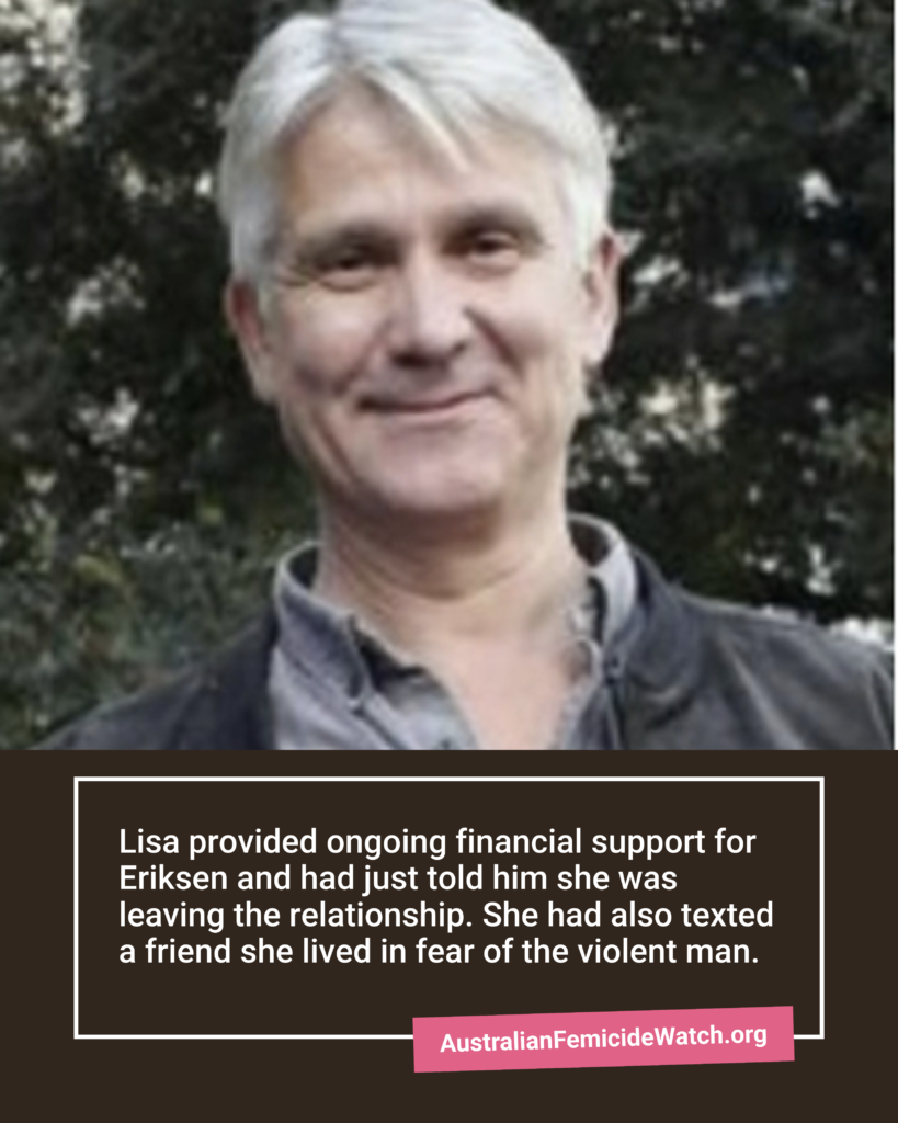 Lisa provided ongoing financial support for Eriksen and had just told him she was leaving the relationship.