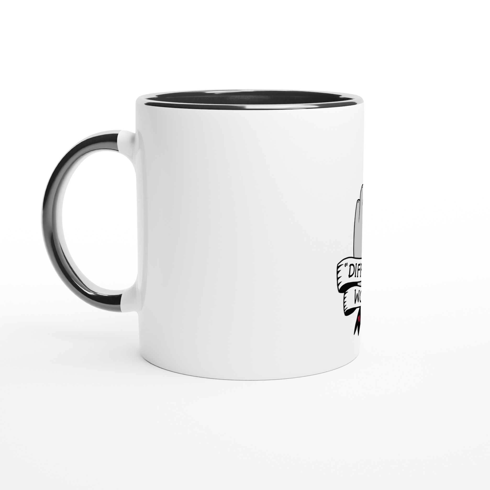 This beautiful ceramic mug is perfect for any event of the day. Your morning coffee, a hot chocolate, or any other hot beverage you enjoy. The mug is glossy white with a colored rim, inside, and handle. The prints come out beautifully and vividly on it. The print retains its quality and luster when used in both microwaves and the dishwasher.