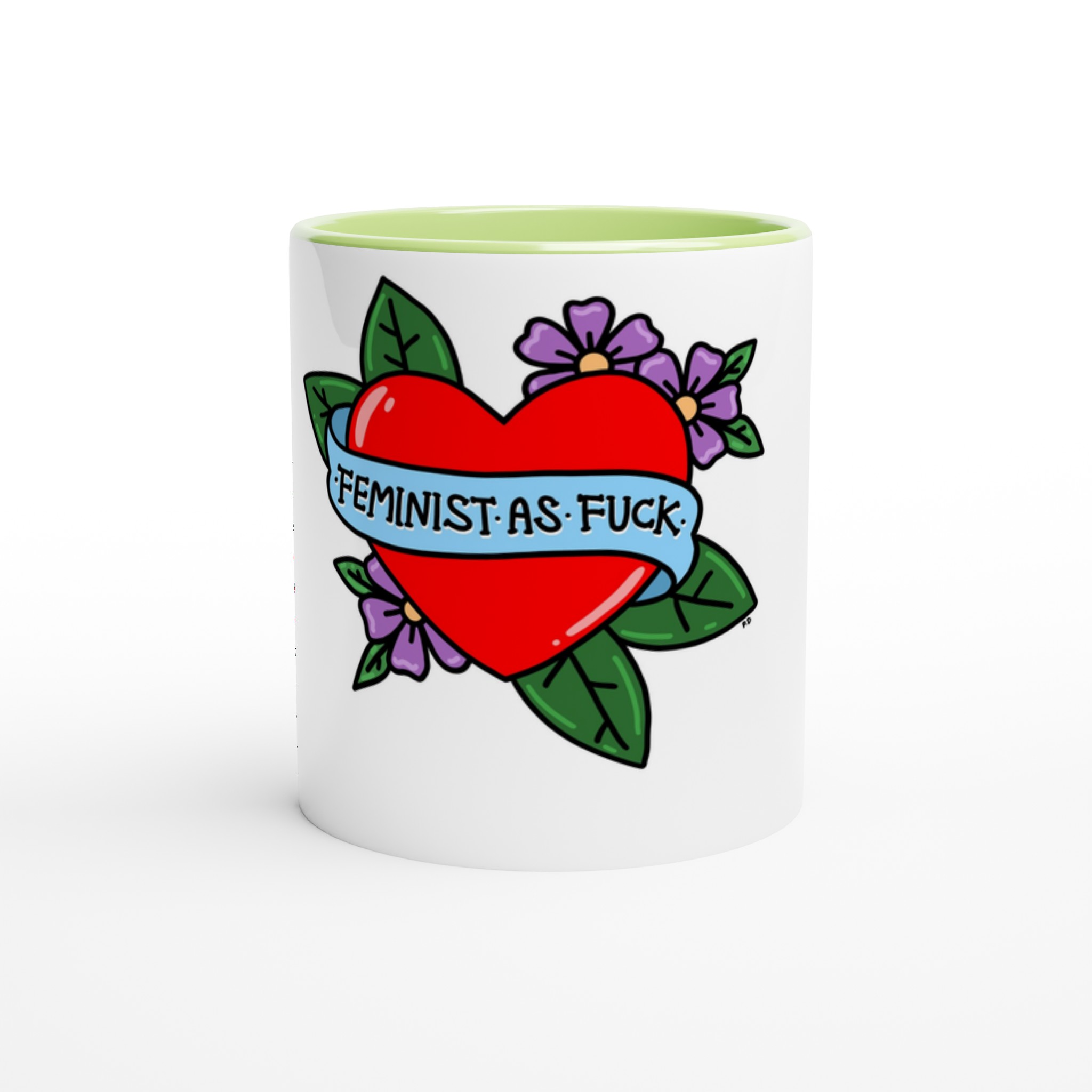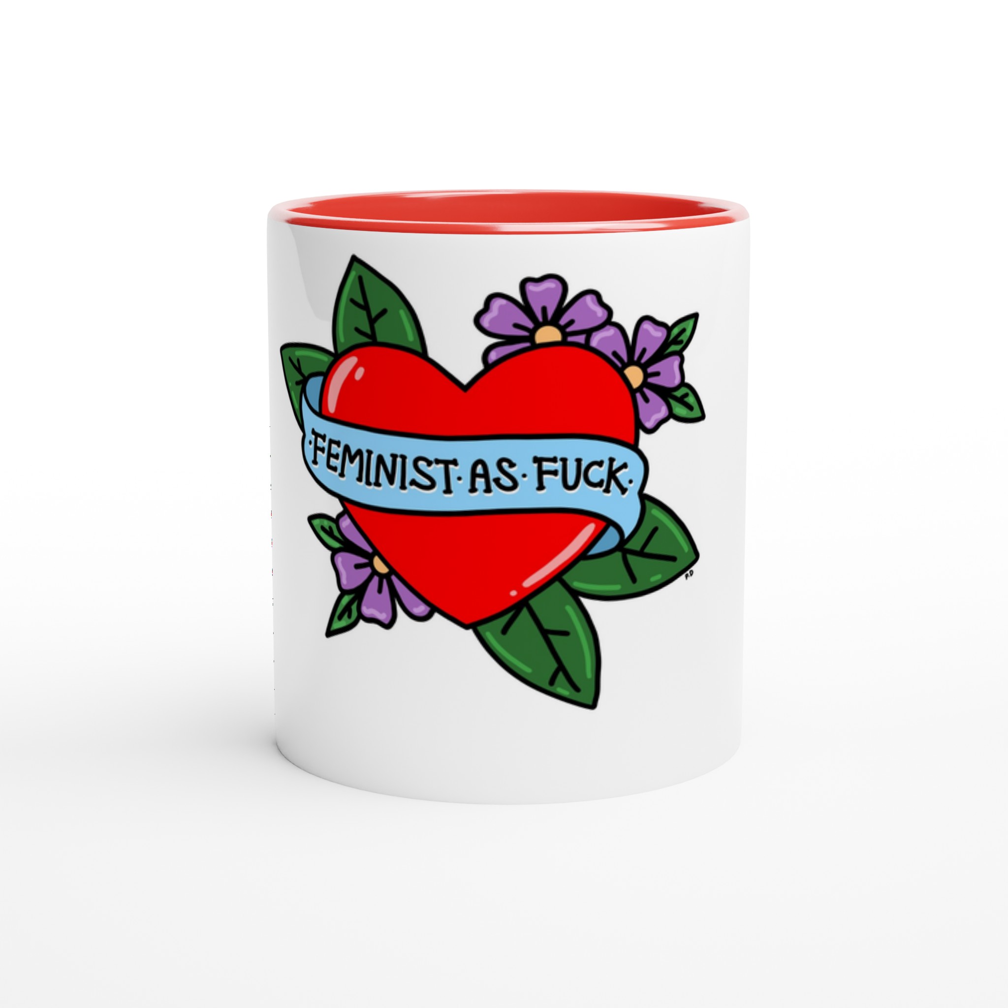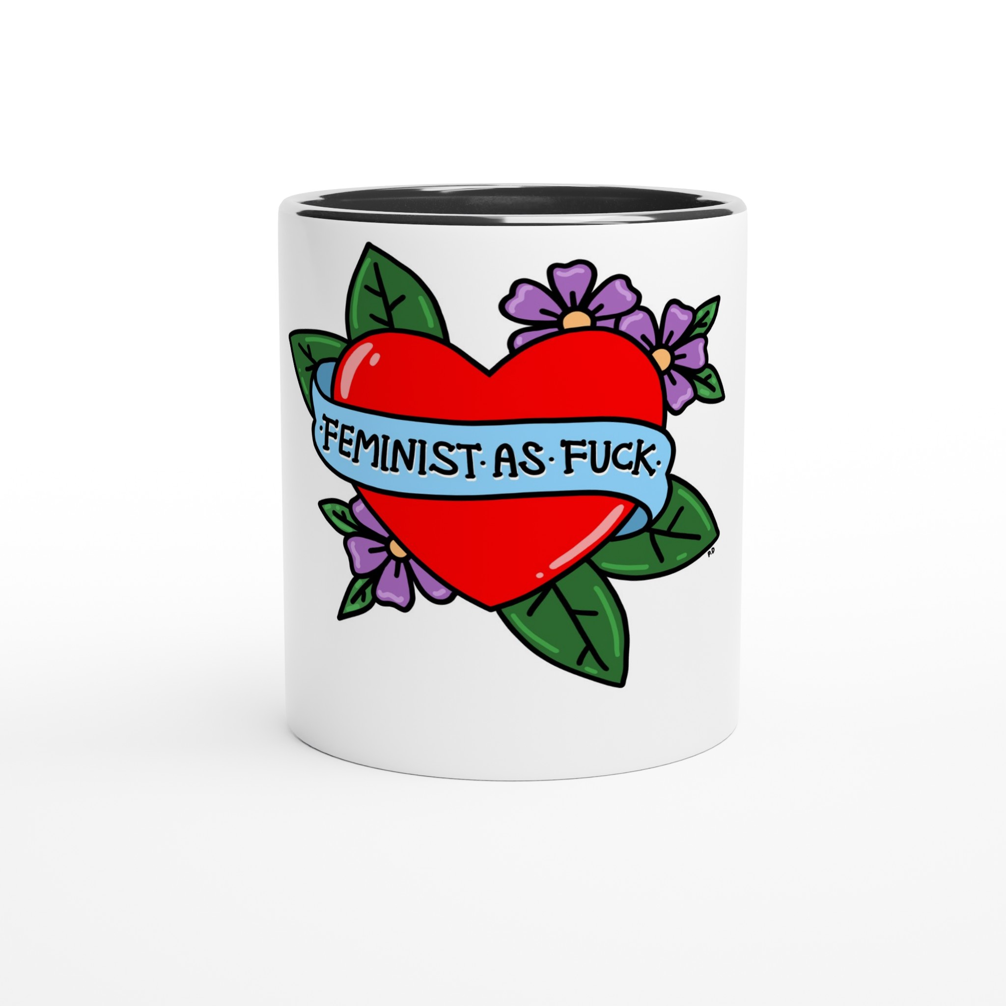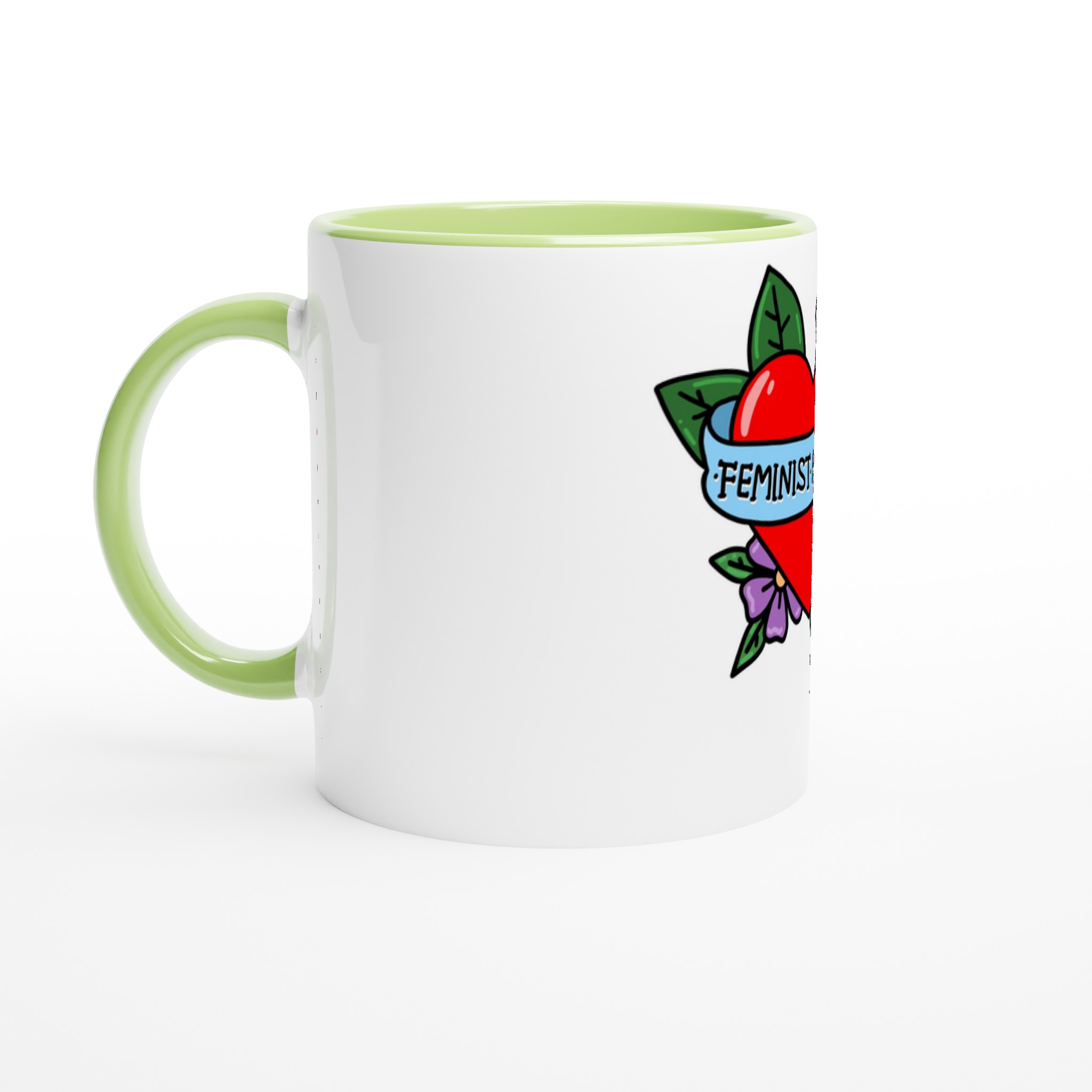 This beautiful ceramic mug is perfect for any event of the day. Your morning coffee, a hot chocolate, or any other hot beverage you enjoy. The mug is glossy white with a colored rim, inside, and handle. The prints come out beautifully and vividly on it. The print retains its quality and luster when used in both microwaves and the dishwasher.