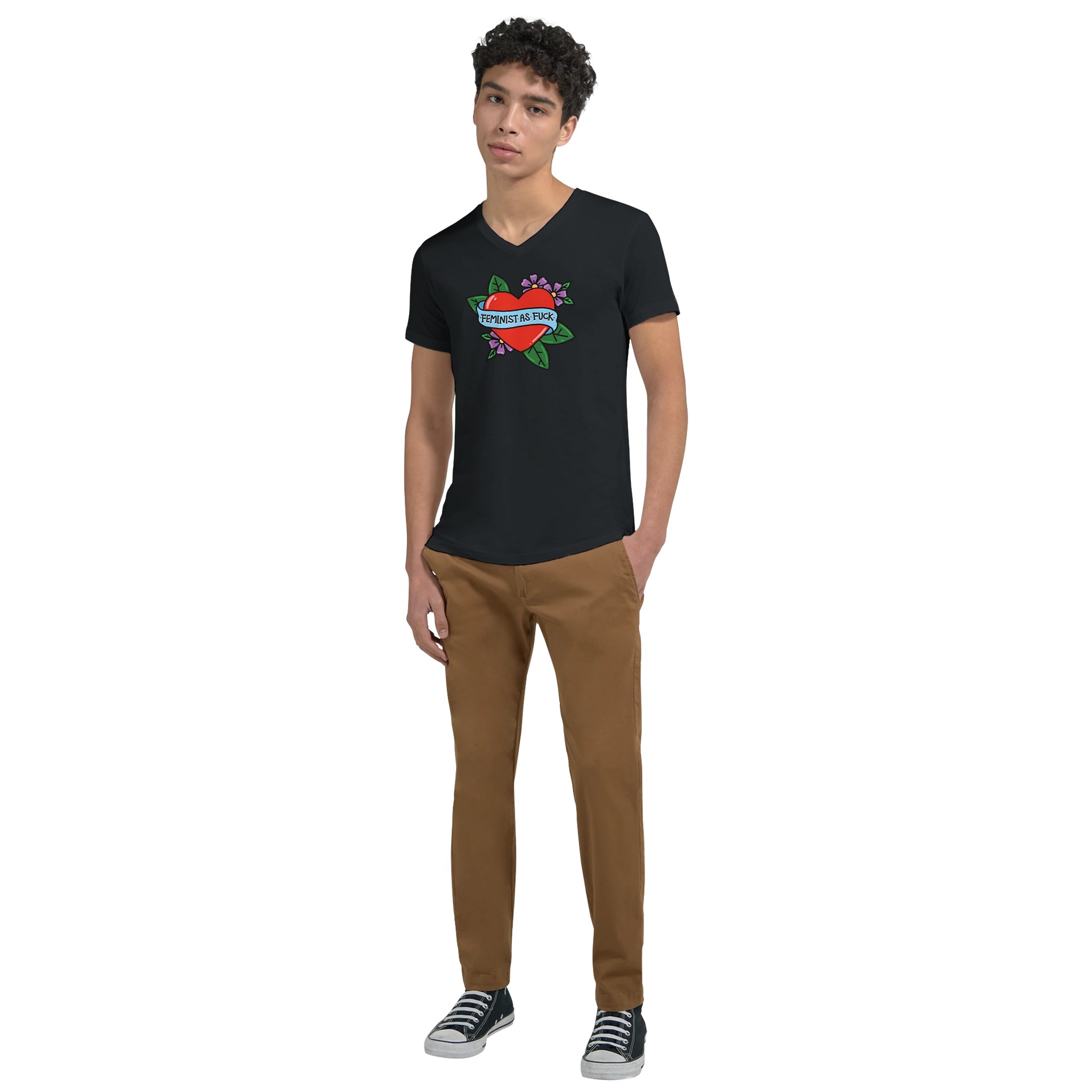 This essential unisex jersey t-shirt fits like a well-loved favorite, featuring a classic V neck, short sleeves and superior combed and ring-spun cotton that acts as the best blank canvas for printing.