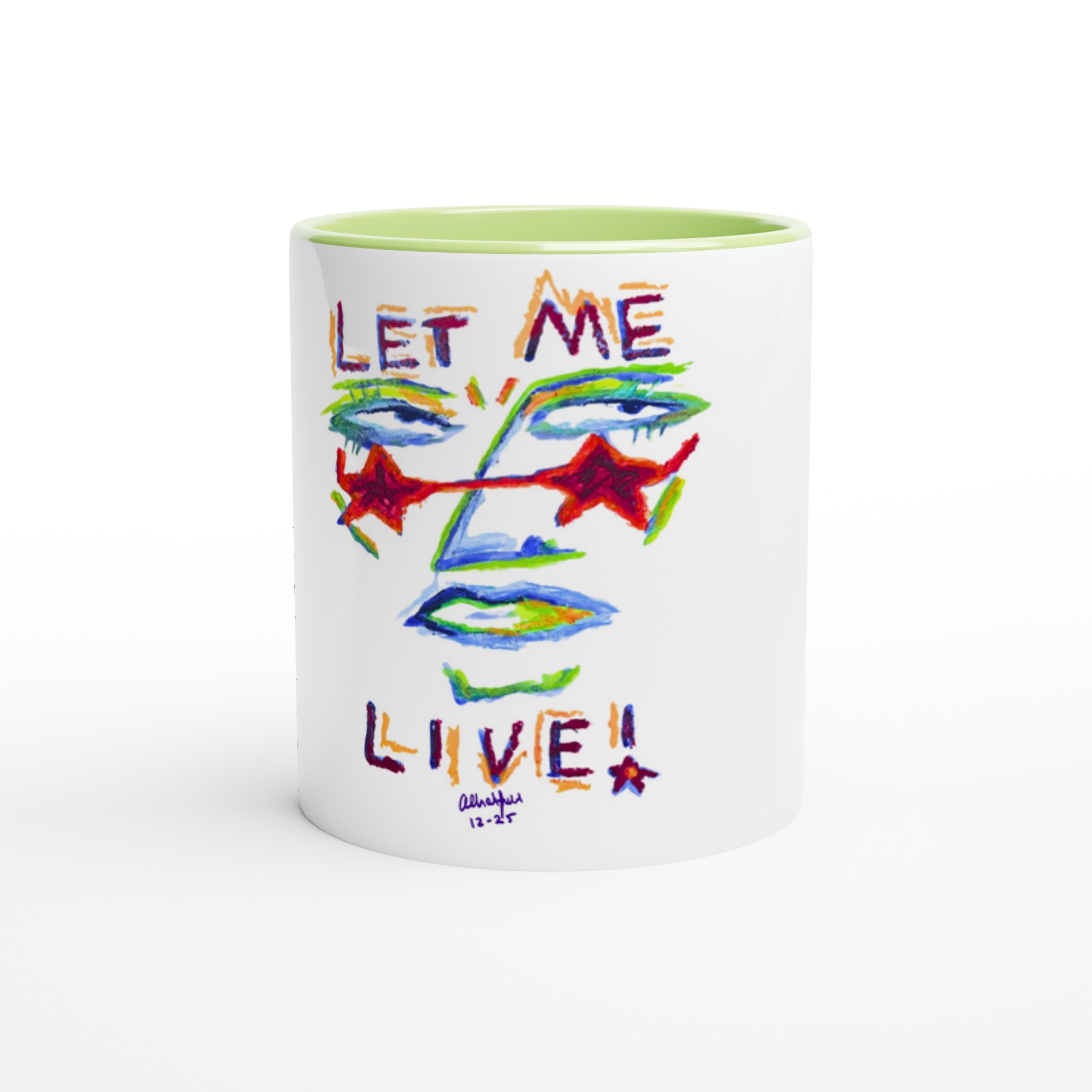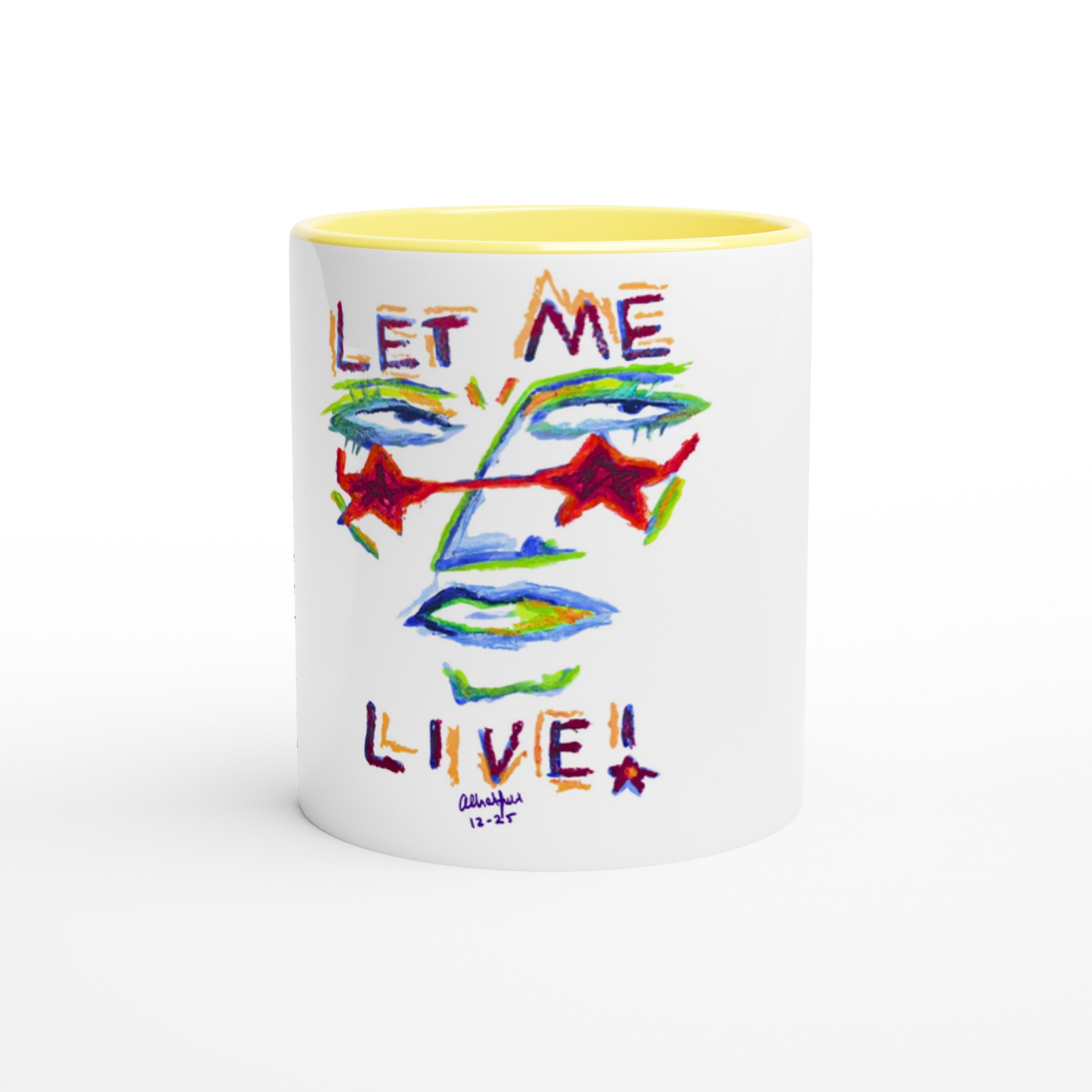 This beautiful ceramic mug is perfect for any event of the day. Your morning coffee, a hot chocolate, or any other hot beverage you enjoy. The mug is glossy white with a colored rim, inside, and handle. The prints come out beautifully and vividly on it. The print retains its quality and luster when used in both microwaves and the dishwasher.