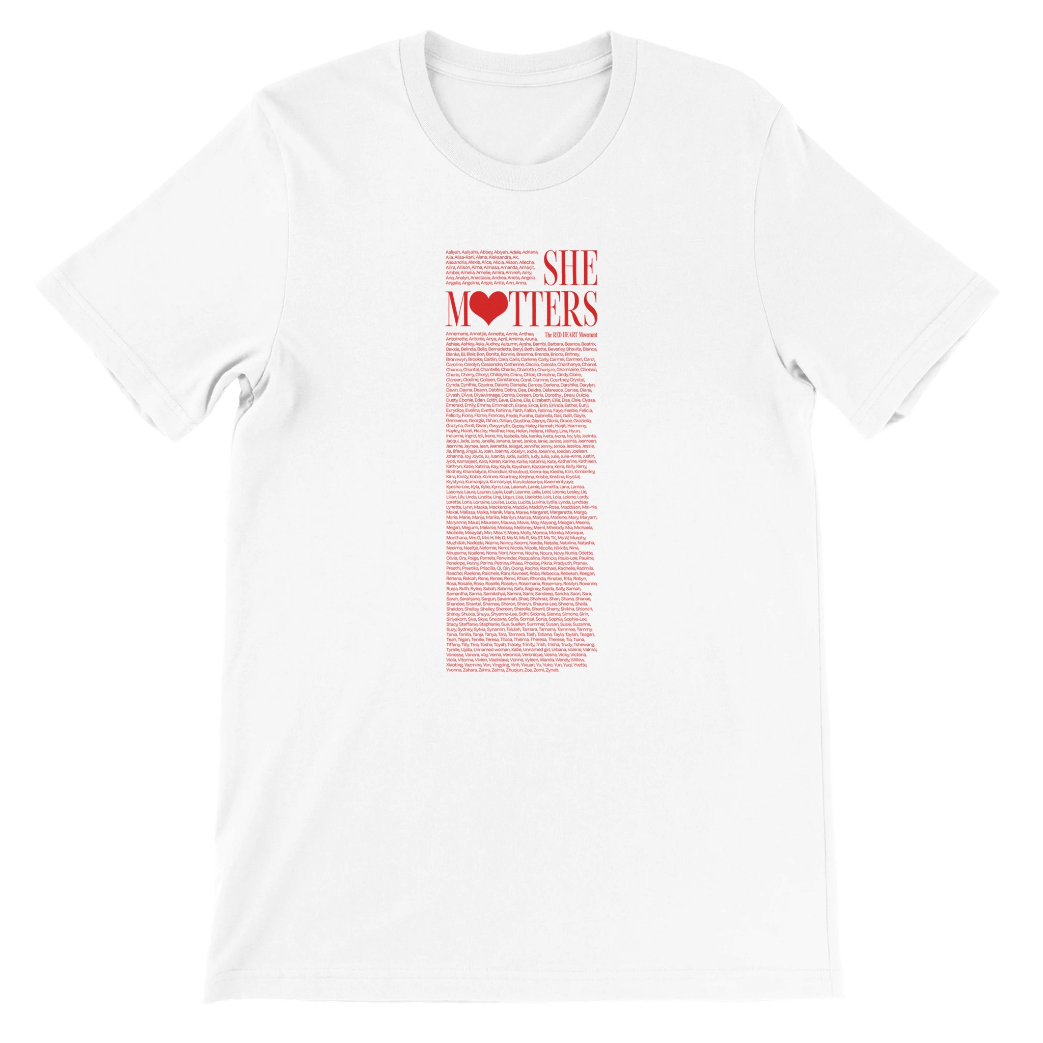 This special tee features the first names of almost 1000 Australian women and girls lost to violence this century. This is by no means an exhaustive list.