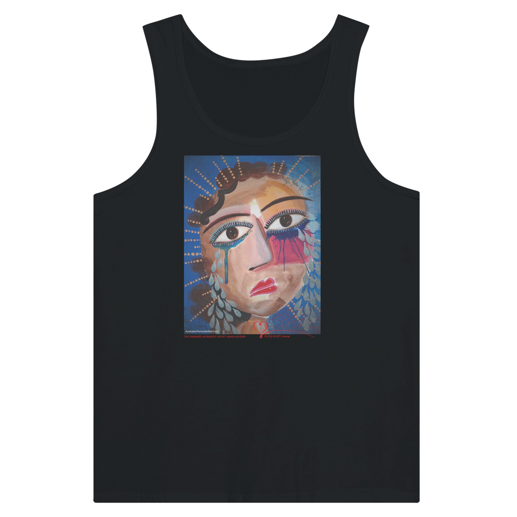 The Unnamed Woman is an exclusive artwork by Australian artist, anti-violence advocate and author Amani Haydar. This image is used in The RED HEART Campaign’s Memorial to Women and Children to represent unidentified Australian women lost to violence. In Australia, a woman is killed every four days and a child every four weeks. Almost all of their lives are erased by violent men and as a result of domestic violence. Australian Femicide Watch and The RED HEART Campaign document every woman and child killed in Australia. When you buy this t-shirt – and all of our other products – 100% of profits fund this vital work. Help change the story for Australian women and children. Their lives matter!