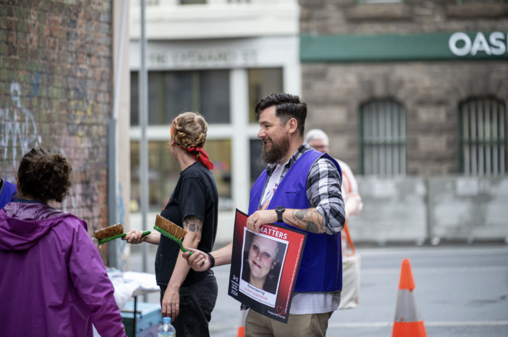Families of women on the wall came to hang their person’s card; sector professionals spent their day helping to install the mural; and community members gathered to honour and remember the victims of Australia’s ongoing femicide epidemic.